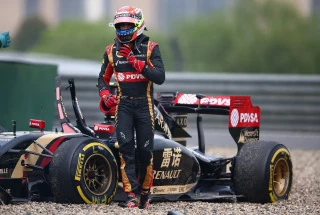 While entering pit lane, Lotus' Pastor Maldonado crashed into the wall in the pit entrance.
