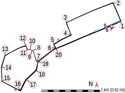 The second DRS activation point was moved 100 meters (330 feet) further forward, which is being positioned 447 meters (1,467 feet) after turn 20.[7][8]